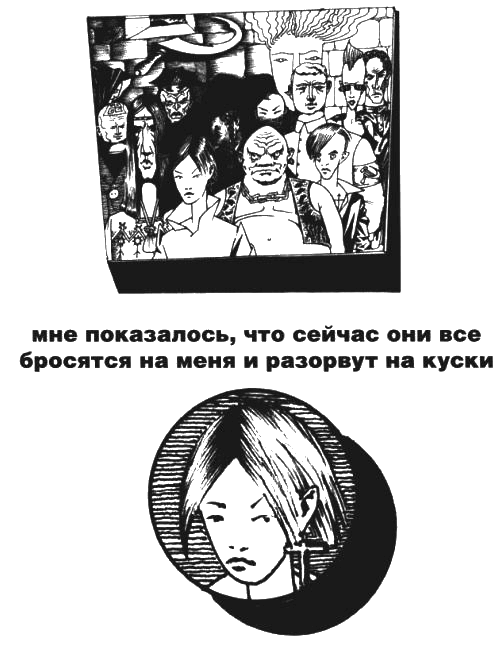 Мне показалось, что сейчас они все бросятся на меня и разорвут на куски. Но тут грохнула тяжелая древняя дверь, и две фигуры в точно таких же плащах появились на пороге. Это вошли Элли и Яромир. Они молча застыли в дверях. Все лица обратились к ним, все по-прежнему молчали, затем словно ветер пронесся по залу, словно взмахнула крыльями огромная стая птиц. Как по команде, все собравшиеся достали откуда-то черные плащи с капюшонами и накинули их на плечи.