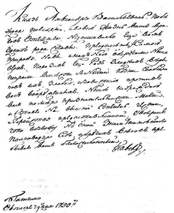 Ныне награждаю Вас по мере признательности Моей и, ставя Вас на вышний степень чести, геройству предоставленный, уверен, что возвожу на оный знаменитейшего полководца сего и других веков».