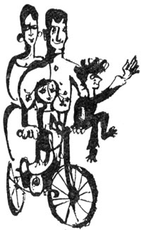 Херлуф Бидструп, известный датский художник, сказал о Дании, что это страна, густо населенная велосипедистами. Наверно, он не был в Дели. Велосипед здесь не только признак известного благосостояния, не только роскошь, но и средство передвижения. Расстояния огромны. Автобусов мало. В автобусах давка. Такси, велорикши — за все это надо платить. Велосипед тоже стоит порядочно, но зато уж потом езди себе бесплатно, выписывай по мостовым затейливые кренделя, везя жену на багажнике, а детей на руле. Любой делийский велосипедист мог бы подписать контракт с нашим цирком. Номер проходил бы с успехом…