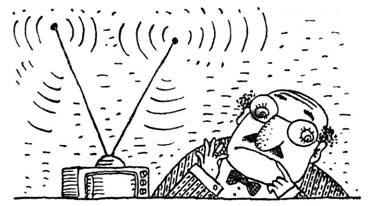 – В газете писали, как вылечить от этой болезни! Нужно поставить второй телевизор напротив того, в котором сидит больной. Его внимание сразу же привлечет экран напротив, и он выскочит из одного телевизора, чтобы попасть в другой. Тут-то и надо уловить момент и, пока он летит, выключить сразу оба телевизора. И тогда игра окончена. Притягательная сила телевизора исчезнет, и больной возвратится на землю. Конечно, нужно заранее расстелить на полу ковер, чтобы он не ушибся. Адвокат, о котором писали в газете, был спасен именно таким образом, но, упав на пол, он набил три шишки на голове. Их, правда, можно вылечить без особых осложнений недели за три.
