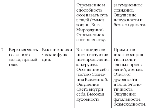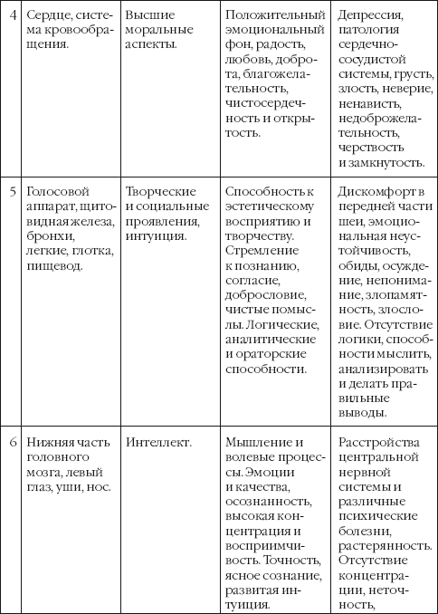 Вся необходимая информация по работе с чакрами дана в таблице, помещенной в конце главы.