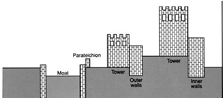 Рис. 3. Схема, показывающая тройной пояс стен Константинополя в разрезе. Взято из [1464], с. 79.
