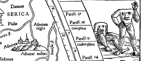 Рис. 23. Серы-людоеды, то есть Русы-людоеды, или скифы-татары-антропофаги готовят еду. Здесь сочувствие просвещенных и деликатных читателей Западной Европы XVII–XVIII веков, вероятно, сменялось осуждением. Фрагмент карты «античного» Птолемея, напечатанной С. Мюнстером. Взято из [1353], Tabula Asiae VIII