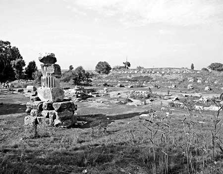 Рис. 61. Осушенное археологами в XX веке болото на юге Турции, где якобы стоял храм Артемиды Эфесской, одно из чудес света. Но никаких доказательств, что именно здесь был этот храм, нет. Немногочисленные каменные обломки, якобы остатки храма, разложены тут явно для туристов. Кстати, болото это лежит у самого подножия холма, на котором возвышается средневековая сельджукская крепость и мечеть. Странно, что чудо света «скромно» возвели на болоте под холмом, а не на самом холме. Фотография 2008 года.