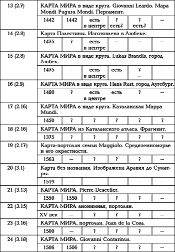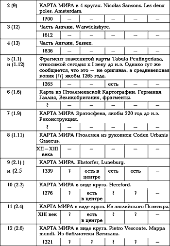 Приводимая ниже таблица составлена Т.Н. Фоменко в результате изучения карт, опубликованных в [1160]. Таблица устроена так.