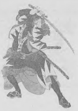 «С этими словами он подскочил к Нагасаки Таро и одним ударом меча перерубил ему правый набедренник, коленную чашечку, седло и пять ребер его коню. Конь вместе со всадником зашатался и рухнул на землю.»