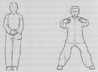 2. Если статических форм не так уж густо, то динамических поистине тьма египетская. Причина проста – здесь подключается такое множество переменных факторов и вариаций с движениями рук, ног, головы, корпуса, что решительно каждый старый традиционный стиль или школа имеют свой специфический цигун и методы регулировки дыхания. Тем не менее, вполне реально выделить несколько общих схем, одинаково успешно применимых как для разгона в начале тренировки, так и для усмирения дыхания между упражнениями и в конце занятий, независимо от изучаемого направления. Более того, для успешной практики можно и вовсе не изнурять себя боевым искусством, поскольку эти методы замечательно вписываются в простую повседневную жизнь, работу и отдых. Но прежде, чем приступить к изложению конкретных технических моментов, хочу еще раз подчеркнуть, что вы держите в руках не пособие по цигун, поэтому я ограничиваюсь описанием упражнений сугубо в качестве дыхательных. Рекомендации по тонкостям энергетических проводок ищите в специальной литературе; самое первое, с чего принято начинать исполнение абсолютного большинства комплексов почти во всех старых школах – это чудесная форма, направленная на пробуждение Ци в теле. В разных стилях она встречается под разными, чаще всего поэтическими, названиями, наиболее характерные из которых: «Открыть Великий Предел» (Бао Тайцзи),«Подъем воды»и уже упомянутое «Пробуждение Ци».