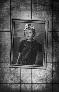 Она приблизилась к одной из фотографий и рукавом осторожно вытерла пыль со стеклянной рамки. Это было фото маленькой девочки не старше девяти-десяти лет, ее светлые волосы падали ей на плечи. Она стояла и одной рукой держалась за нечто похожее на кресло без подлокотников, словно позировала для портрета. На ней были узорчатое платьице и красивая бижутерия. Но вдоль ее лба шел большой неровный шрам, и что-то было не так с ее глазами.