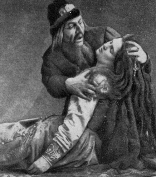 Сцена из оперы «Псковитянка». Ф. И. Шаляпин — Иван Грозный, В. А. Эберле — Ольга