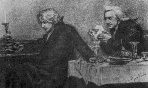 М. А. Врубель. Сальери всыпает яд в бокал Моцарта. Рисунок. 1884