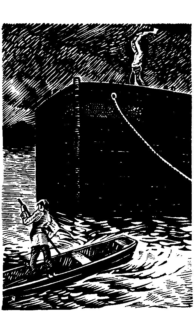 Что-то стукнуло о баржу. Пашка прислушался, вытянул шею, смотрит в темноту — ничего не видно... Под бортом будто лодка пробирается...