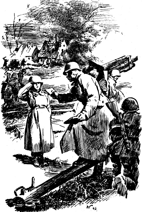 Ваня повернулся через левое плечо, поправил шлем и, не оглядываясь, побежал. Не успел он пробежать и ста метров, как услышал за собой орудийные выстрелы. Это били по танкам пушки капитана Енакиева.