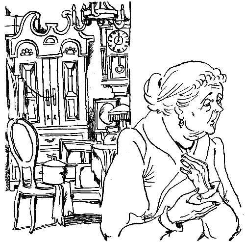 И комната, в которой мы очутились, тоже была старая. Потолок неестественно высок, занавески темные, тяжелые, вытертые, мебель изношенная, скучная. На всем лежала печать уныния, оскудения.