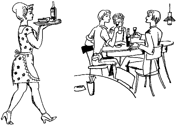 Когда папа уезжает в командировку, мы с мамой обедаем в столовой. Обычно я заказываю блинчики с вареньем. Меня удивляет, что люди заказывают, например, котлеты с макаронами. Ведь блинчики гораздо вкуснее.