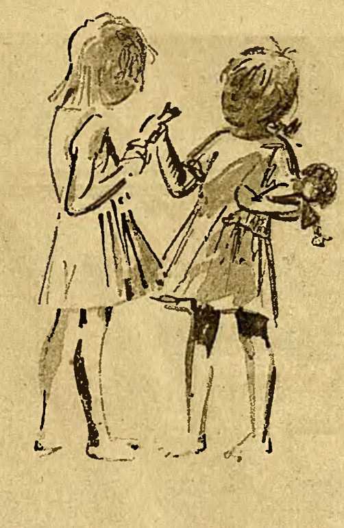 Нюшка всхлипнула в последний раз и засмеялась. Побежала в спальню, взяла свою куклу — и опять к Мурке.