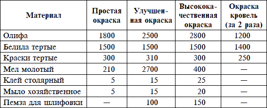 Расход материалов на комплекс работ при окраске стен по штукатурке и кровле по металлу приведен в табл. 9 (в граммах).