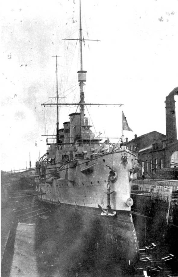 Крейсер «Олег» во время ремонта в кронштатском доке. Конец 1910 — начало 1911 гг.