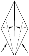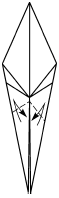 1. Сложите базовую форму «птица». Согните к центру нижние углы, сделав их вдвое тоньше.