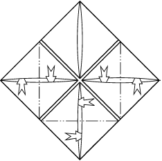 6. Опустите угол, потянув за середины сторон. Повторите с противоположной стороны.
