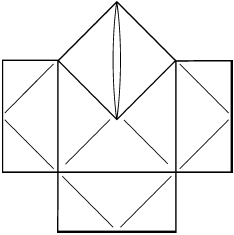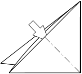 3. Наметьте линии «долин», соединив точки, указанные на рисунке так, чтобы получился прямоугольный треугольник. Раскройте нижнюю часть заготовки. При это линии «гор» наметятся автоматически. Повторите с другой стороны.