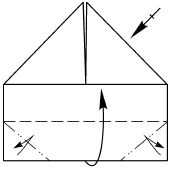 1. Выполните действия 1–6 предыдущей модели. Перегните нижние углы к линиям перегибов.