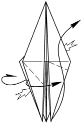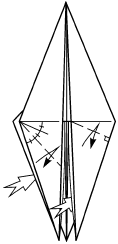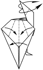 11. Выверните голову, согните «долины» по рисунку симметрично, перелистните обратно.