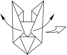 11. На этом рисунке мордочка увеличена. Согните угол «горой», захватывая только верхний слой бумаги.