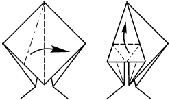 4. Сгибая по указанным линиям, одновременно поднимите нижние уголки наверх.