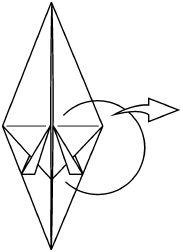 12. Снова выгните треугольник наружу. Линия «долина» делит угол пополам. Обе эти линии (спереди и сзади) надо отметить заранее.
