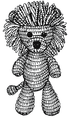 Для мордочки нитью основного цвета набрать 6 воздушных петель и обвязать начальную цепочку с обеих сторон следующим образом: 3 столбика без накида провязать во 2-ю петлю от крючка, далее в каждую петлю цепочки провязать по 1 столбику без накида, в последнюю петлю цепочки выполнить 3 столбика без накида. Повернуть работу и провязать в каждую петлю основания по одному столбику без накида. Продолжить работу круговыми рядами столбиками без накида по схеме: