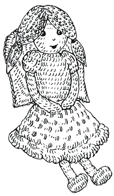 30–40 г пряжи любого цвета (100%-ный акрил или хлопок), немного голубой и черной пряжи типа ирис, крючок № 1,25–3, наполнитель.