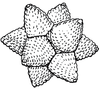 7-й ряд – * 5 столбиков без накида, 5 столбиков без накида провязать в одну петлю основания, 5 столбиков без накида, 3 столбика без накида провязать вместе * , повторить от * до * 5 раз. Ряд закончить соединительным столбиком;