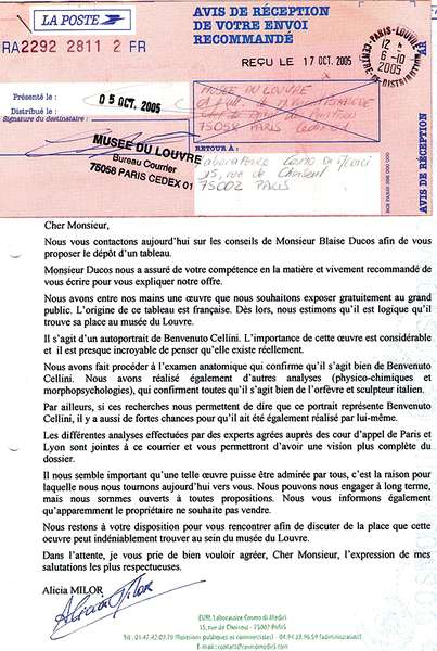 На что наш реставратор мадам Прамс, эксперт, аккредитованный при Апелляционном суде Парижа, четко возразила, что картина выглядит в соответствии со своим почтенным возрастом, принимая во внимание технику письма и основу, на которой она выполнена.