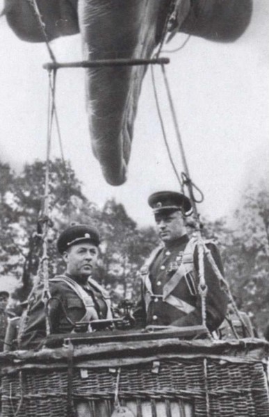 Рокоссовский поднимается на аэростате, чтобы осмотреть театр военных действий