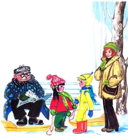 Ей хотелось кататься, а дедушке — читать газету. Идти же на горку одной было боязно, поэтому она просто куксилась.