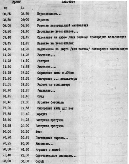 Я сам в пять лет составил и отпечатал на машинке этот распорядок дня.