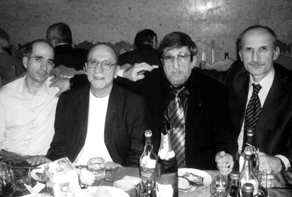 На свадьбе друга, слева направо: оперный певец Муксин Камалов, я, лучший скрипач Кавказа Дадаш Дадашев и актер Русского драматического театра, Алексей Тимохин.