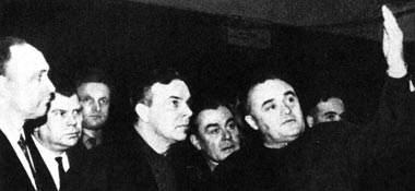 С новыми руководителями партии и государства Л.И.Брежневым (справа) и М.А.Сусловым