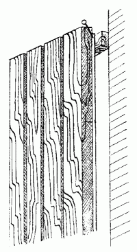 Рис. 34. Монтаж панелей из древесины на деревянные бруски.