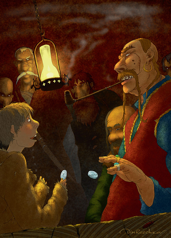 Гулял Егорка, гулял, а к вечеру так устал, что еле дорогу назад к трактиру нашел. Зашел и в уголочке сел. Думает, может Афоня все-таки вернется. Смотрит — а черкасские казаки на своем прежнем месте сидят и снова в зернь играют. Бросился к ним Егорка, у Богдана про Афоню спрашивает, а тот его гонит: «Не знаю, где твой Опанас. Я ему не мамка и не жинка, авось не пропадет». И целовальник не знает, где Афоня. Он мне, говорит, пятиалтынник должен за водку! Я его не меньше тебя ищу!