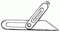 Ерунок представляет собой угольник из двух пластин, одна из которых закреплена на середине другой под углом в 45°. Такой угольник удобен в определении угла в 135° (рис. 13).