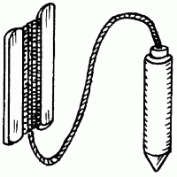 Такой тип уровня представляет собой небольшой конусообразный или цилиндрический груз на бечевке. Опуская его параллельно стены или стороны большой заготовки, можно выявить отклонения от вертикали (рис. 16).