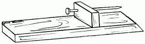 Ее используют при отметке линий на краю заготовки, она представляет собой небольшой брусок со скосом на одном конце и выступом с вбитым гвоздем. Линии отмечают на поверхности древесины острым концом этого гвоздя (рис. 17).