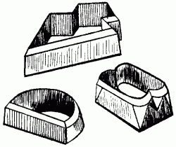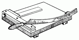 При прорезании контуров геометрических фигур необходимы нож-косяк, резак-гильотина (рис. 109) и прямые штампы-просечки (рис. 110).