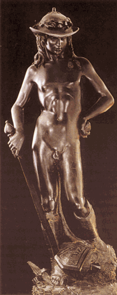 Однажды отец приказал ему отправиться в военный лагерь с едой для братьев. Давид появился в тот момент, когда выстроившиеся в долине израильтяне и филистимляне готовились сразиться друг с другом. Из рядов последних выступил облаченный в медный чешуйчатый панцирь, шлем и наколенники великан Голиаф с длинным мечом на поясе и копьем в руке. Филистимлянский богатырь начал издеваться над еврейским богом и вызывать на бой отважного израильтянина.