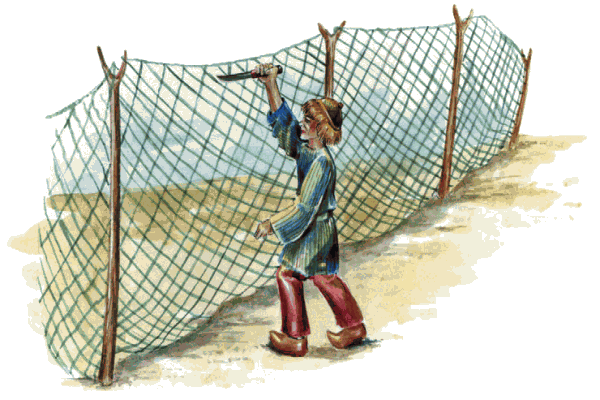 Оставшись сиротой, Куллерво, чтобы прокормить себя, нанялся батраком к своим врагам, а те, не узнав его, позволили ему работать на них. Желая отомстить за смерть родственников, он всячески портил имущество своих хозяев: сломал лодку, затем разорвал сети, и хозяева не смогли выйти в море на рыбную ловлю. Однажды хозяйка, готовя ему еду, запекла в хлебе камень.