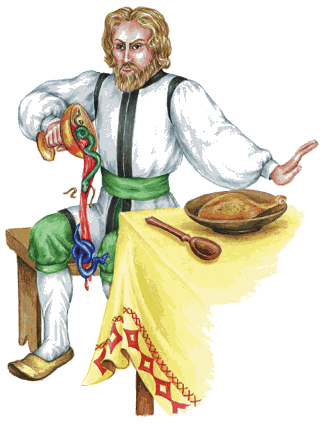 За праздничным столом Лемминкяйнену подносят пиво с червями и змеями. Но он замечает неладное и отказывается от питья. Разгневавшись, он убивает хозяина пира.
