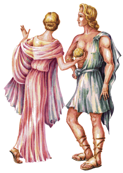 Когда Тесей достиг совершеннолетия, мать назвала ему имя его отца, дала меч и сандалии и велела отправляться в Афины. Юноша надел сандалии, вооружился мечом отца и этим как будто бы приобщился к магической силе, которой были наделены его предки. Затем он посвятил прядь волос богу Аполлону в Дельфах. Этим он заключил союз с богом и посвятил свою жизнь служению ему.
