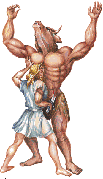 Минотавр жил на острове Крит, во дворце, который построили Дедал и Икар. Дворец имел множество комнат; каждый входящий в него не мог найти выхода и погибал от клыков и когтей Минотавра, человека-быка.