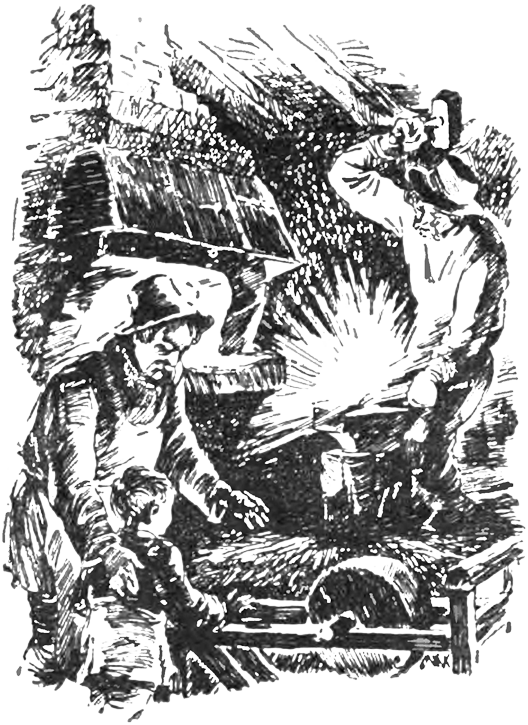 Когда отцовская барабанная дробь, производимая молотом по наковальне, разносилась по слободе, по обыкновению начинали сходиться соседи. Работа в кузнице шла больше всего зимой — летом бывали лишь два коротких сезона: плугов и серпов, и отец открывал кузницу летом разве только в тех случаях, когда кто приходил с какой-либо большой и неотложной работой.